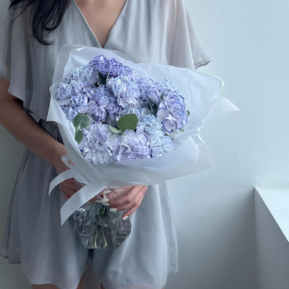 15 лавандовых гвоздик с эвкалиптом (букет N 24)