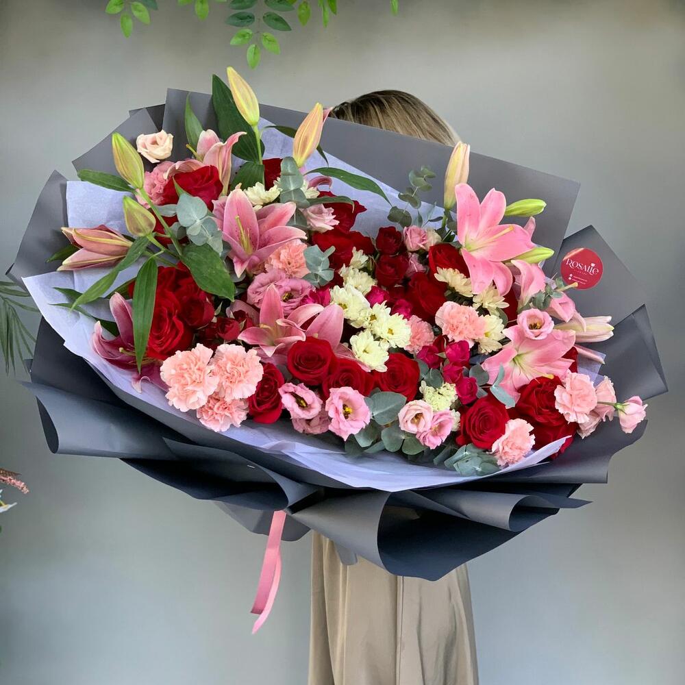 Гвоздики, Кустовые розы, Лизиантусы, Пионовидные розы, Розы