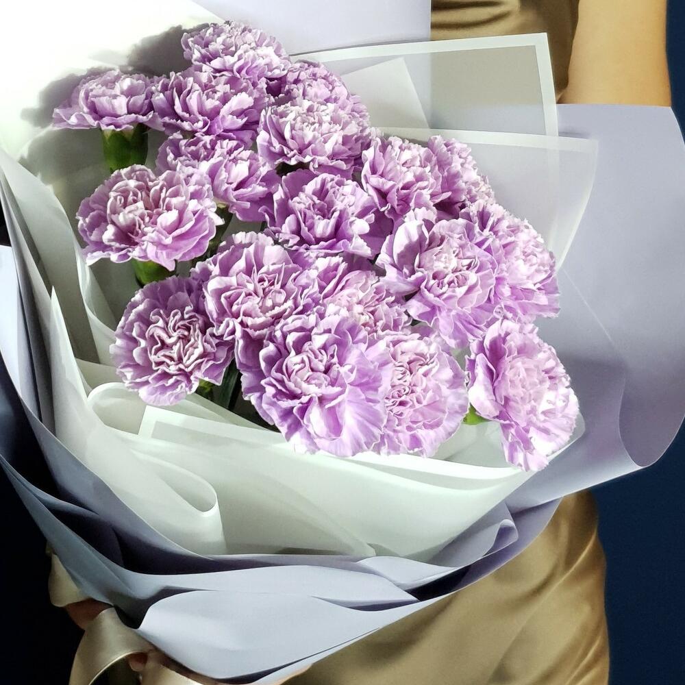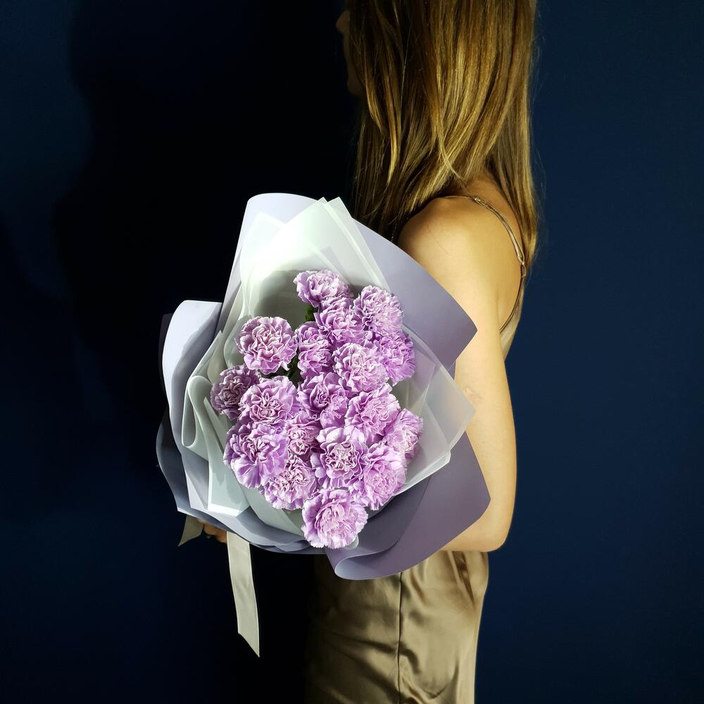 Гвоздика сортовая – 19 шт.Дизайнерская упаковка – 1 шт.Лента атласная – 1 шт.