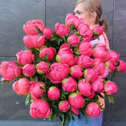 ПРЕМИУМ ШАРМ огромный букет из 15 пионов с эвкалиптом и лимониумом
