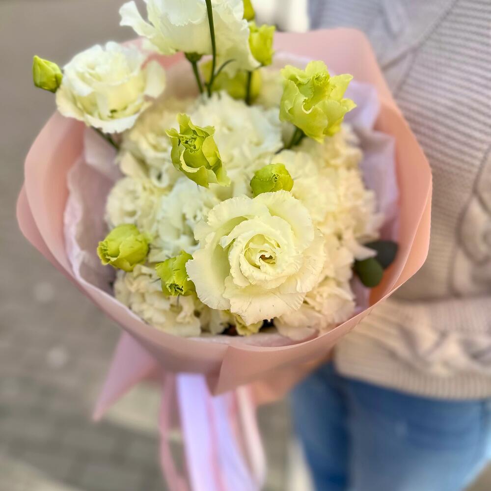 Букет из 9 веток белой эустомы. Этот букет обладает невероятной красотой и излучает нежность.