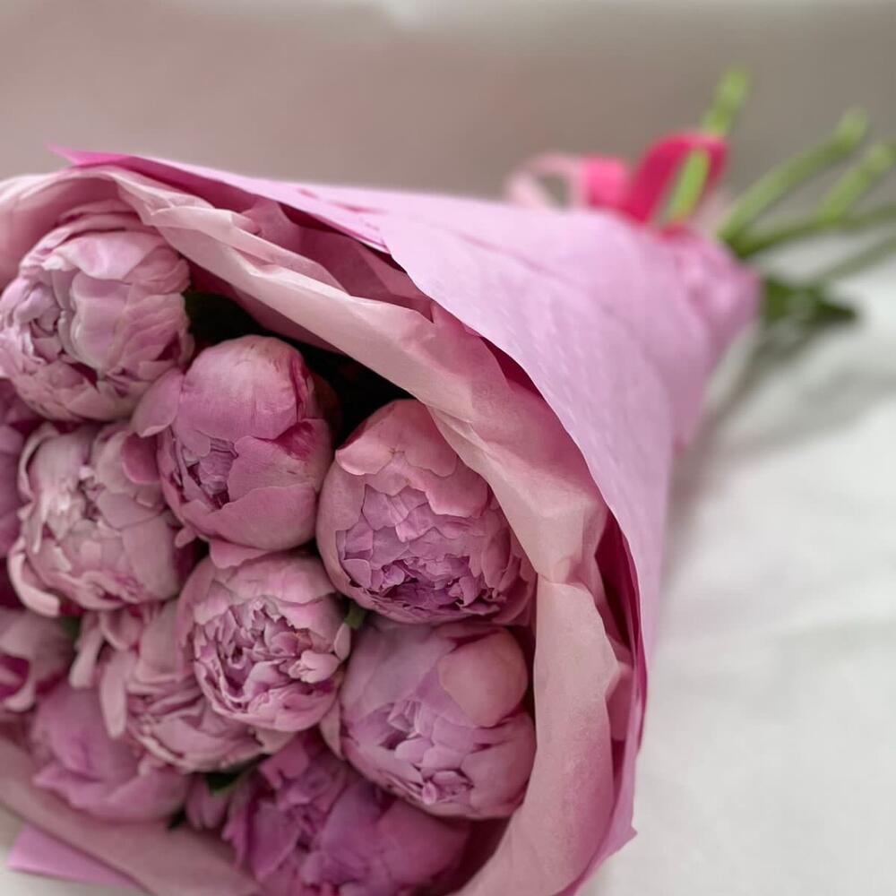 Лента атласная – 1 шт.пион розовый премиум – 11 шт.упакрвк – 2 шт.