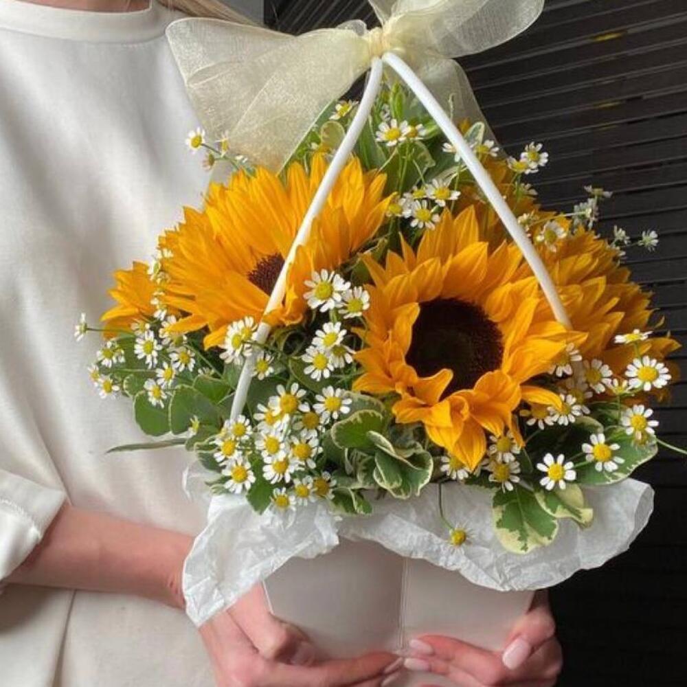 Сезонный букет в солнечных светлых оттенках будет прекрасным подарком, напоминающем о том, что лето всегда рядом. Букеты с подсолнухами – неординарный и яркий подарок с положительными эмоциями в комплекте.