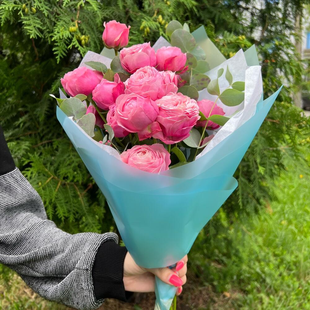 Букет из кустовой пион розы с эвкалиптом (СБ 001)