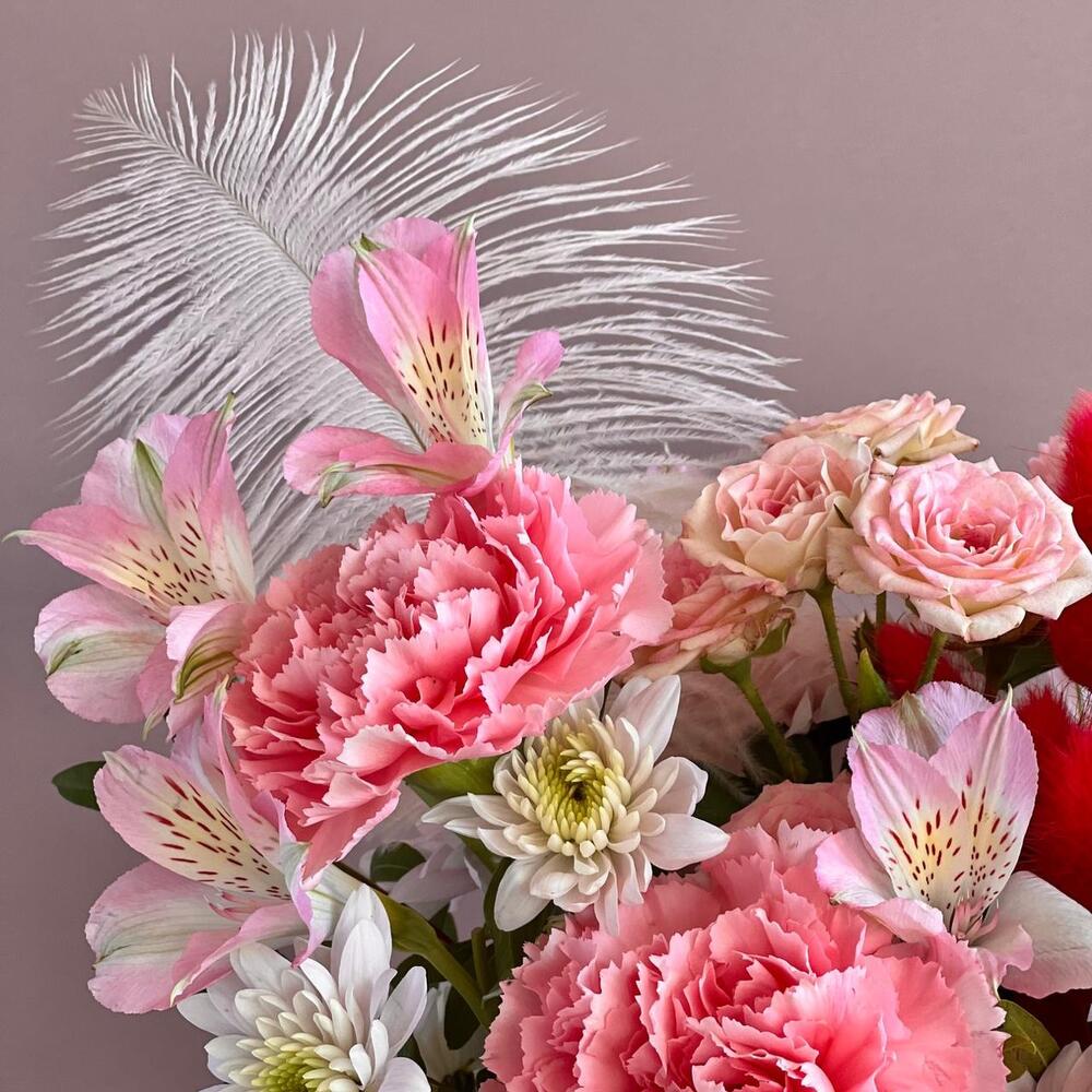 Категорий: Альстромерии, Гвоздики, Кустовые розы, Розы, Сухоцвет, Хризантемы