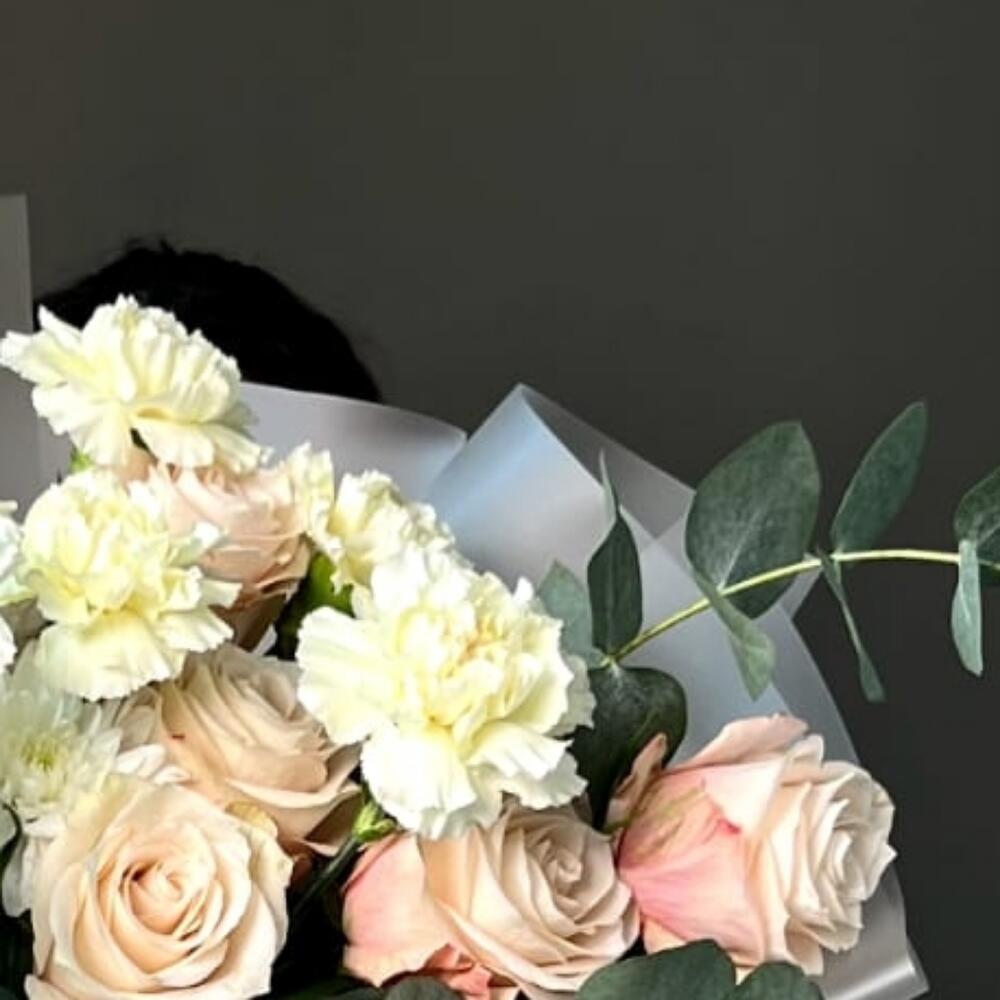 Гвоздики, Кустовые розы, Пионовидные розы, Розы