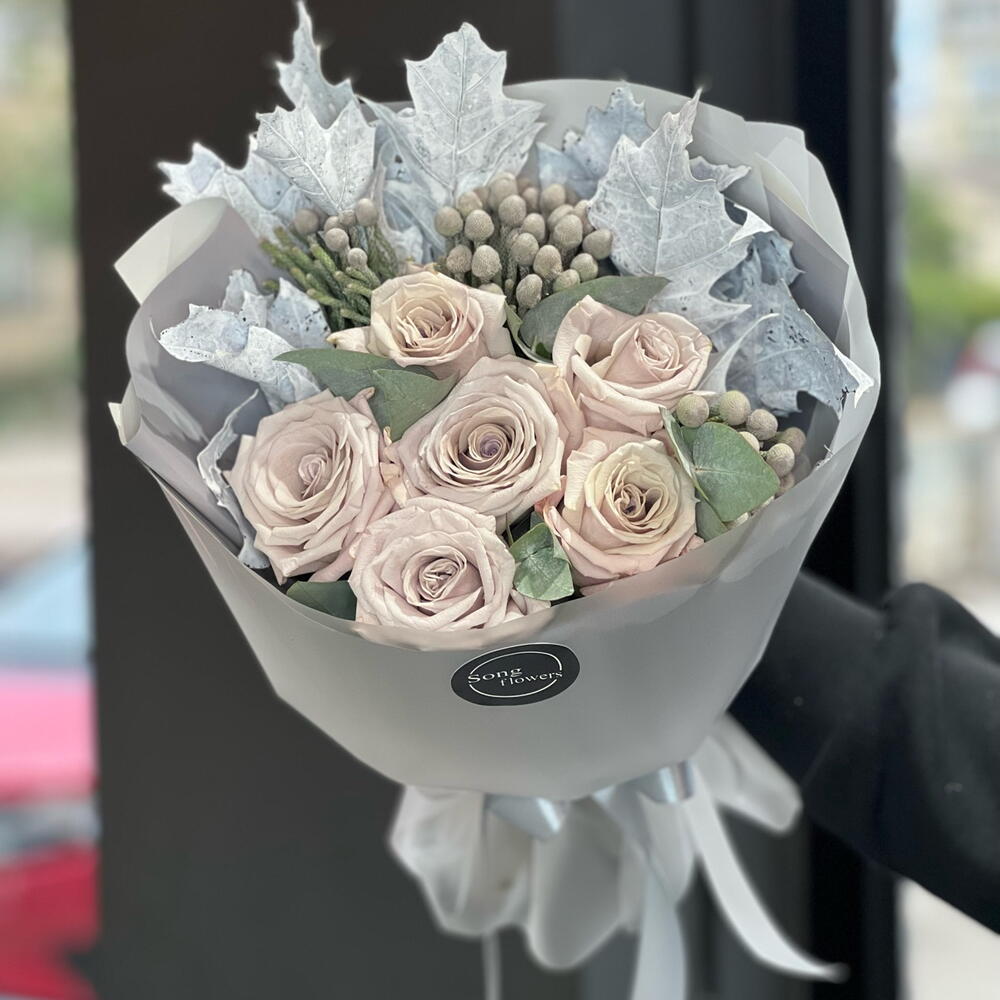 Кустовые розы, Лизиантусы, Розы, Сухоцвет