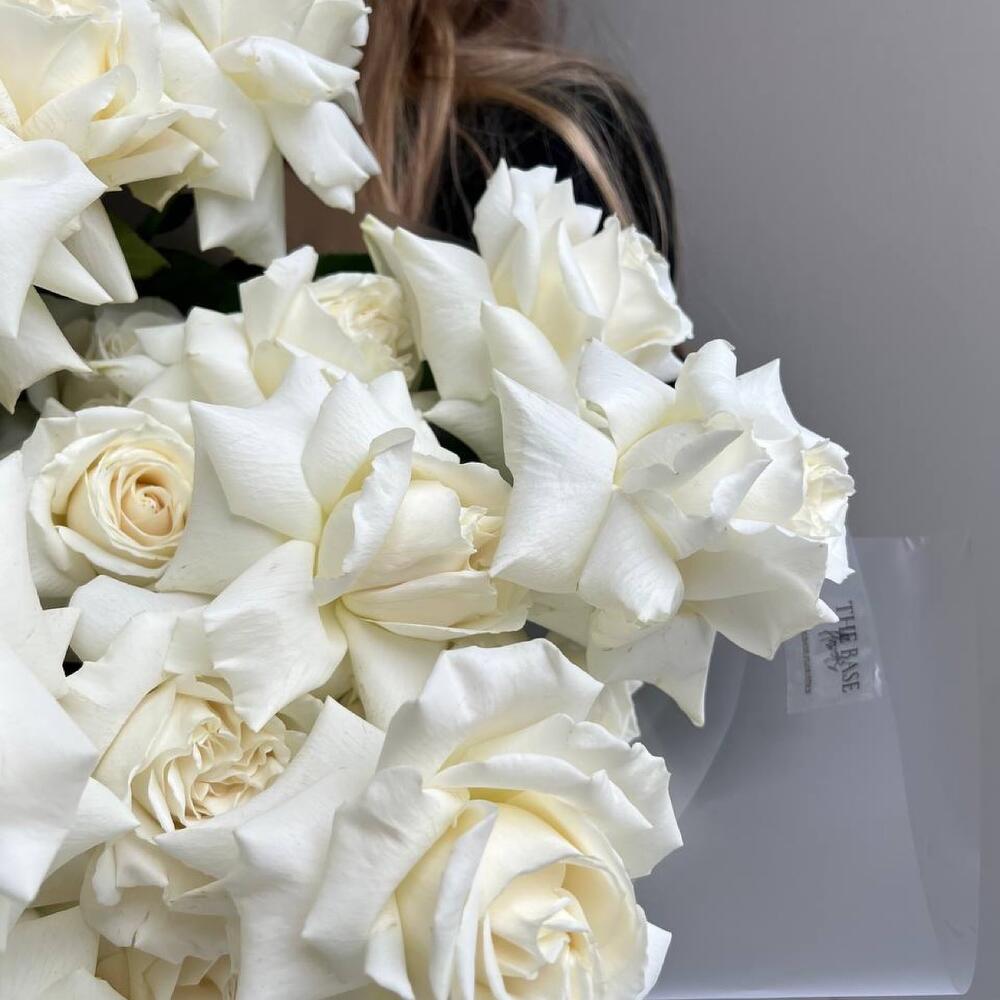 Монобукет из 25 белых роз в упаковке