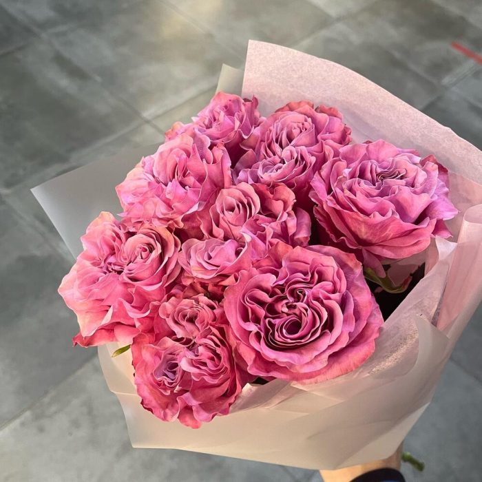 Упаковка дизайнерская – 1 шт.Открыточка с вашими пожеланиями – 1 шт.роза пионовидная кантри блю – 9 шт.