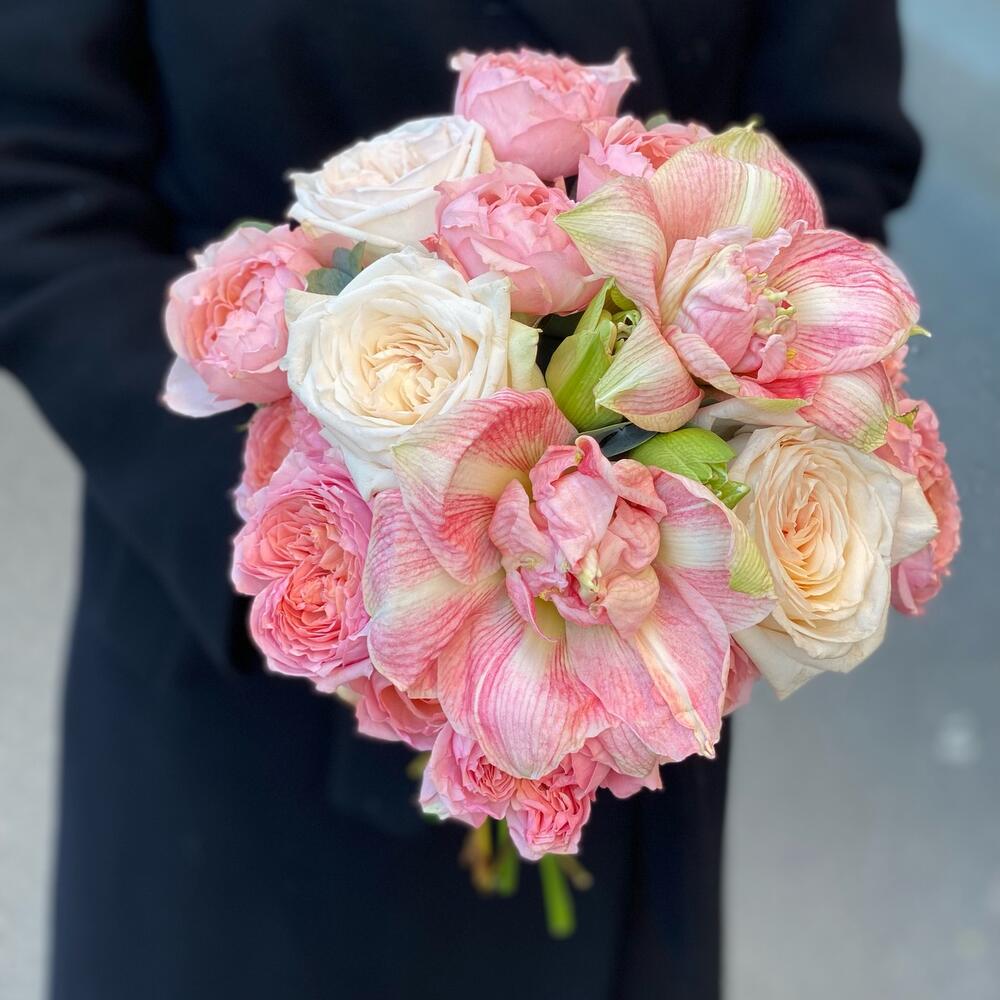 Гвоздики, Кустовые розы, Лизиантусы, Пионовидные розы, Розы