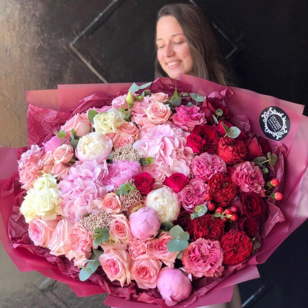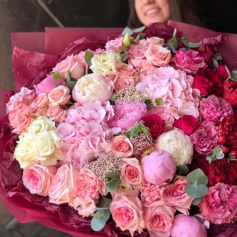 Гвоздики, Кустовые розы, Лизиантусы, Пионовидные розы, Розы