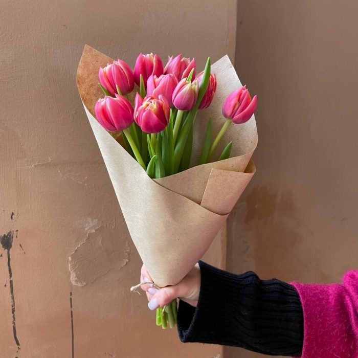 Крафтовая упаковка – 1 шт.Розовый пионовидный тюльпан – 9 шт.