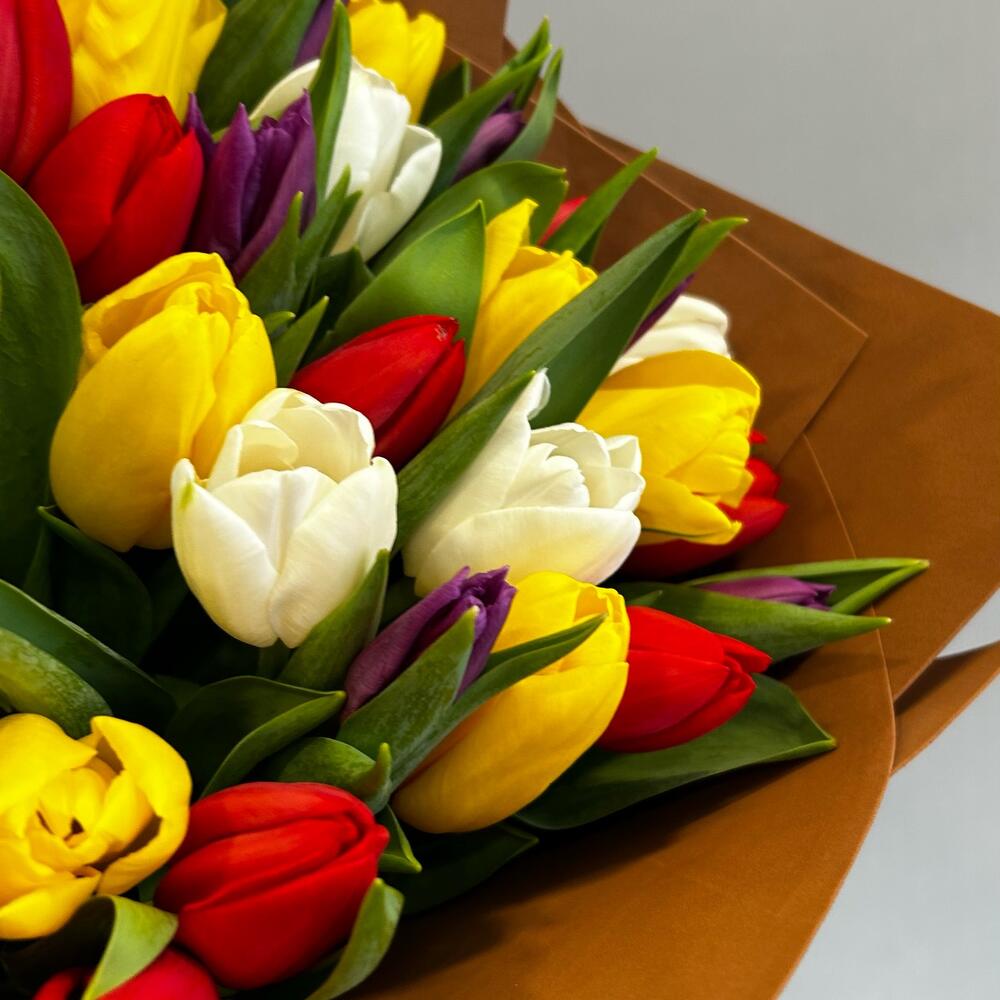 Тюльпан – 35 шт.Упаковка дизайнерская – 2 шт.Лента – 1 шт.